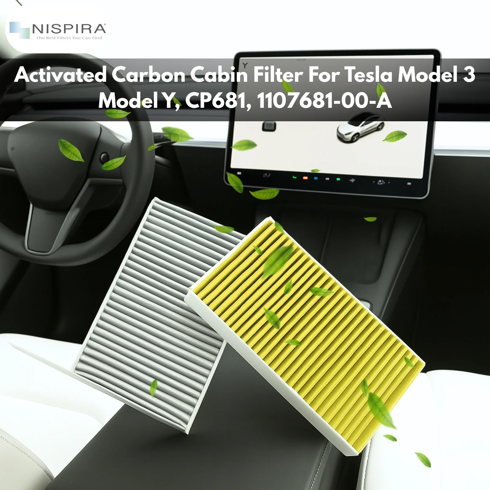 Nispira Activated Carbon Cabin Filter for Tesla Model 3 Model Y, CP681, 1107681-00-A